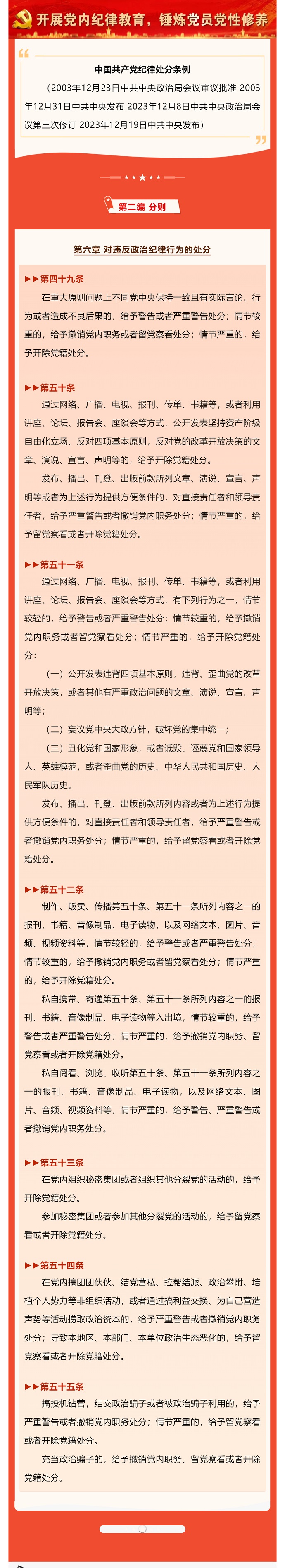 一起學《條例》丨《中國共產黨紀律處分條例》⑥