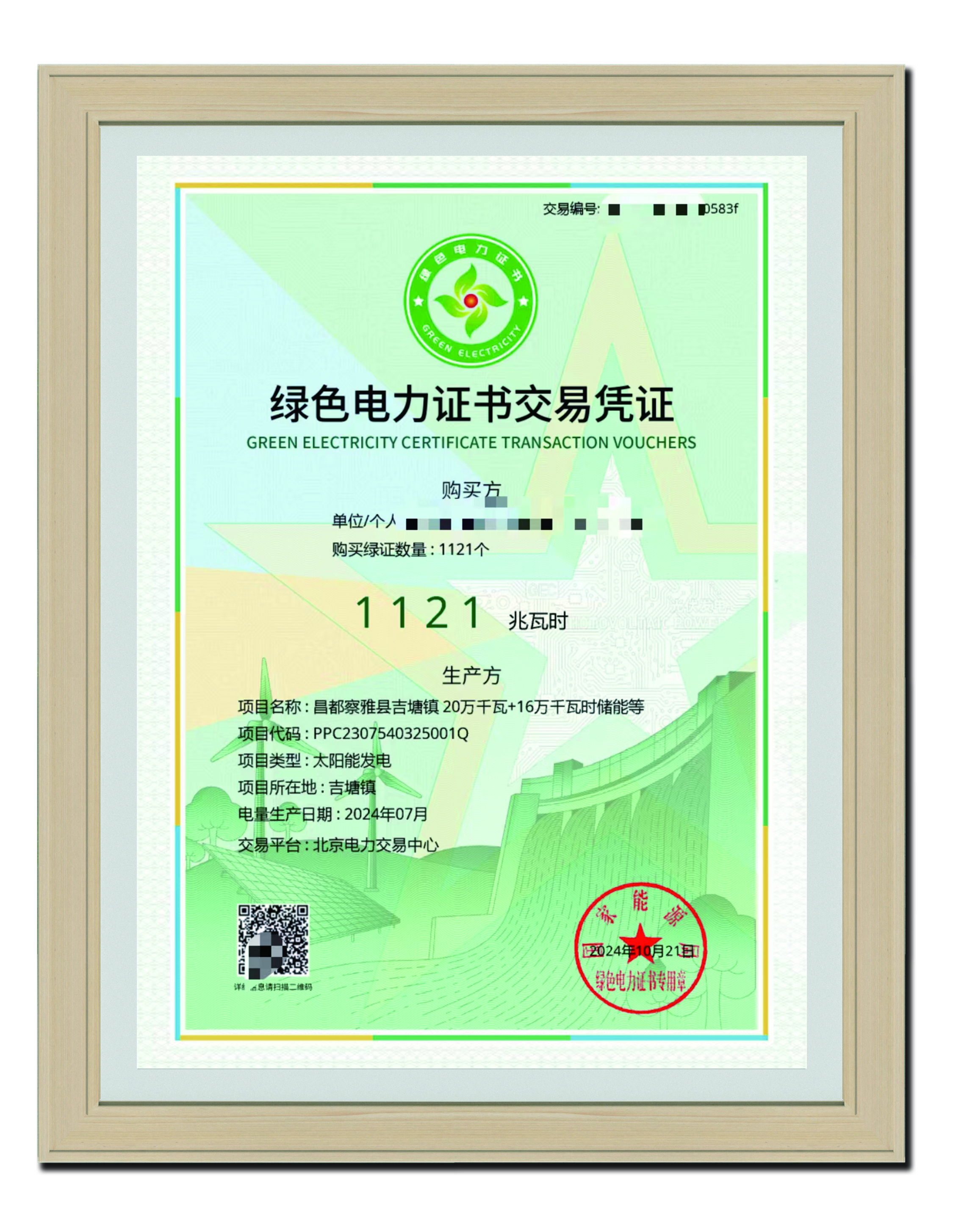 2024年10月21日 綠色電力證書交易憑證1121兆瓦時