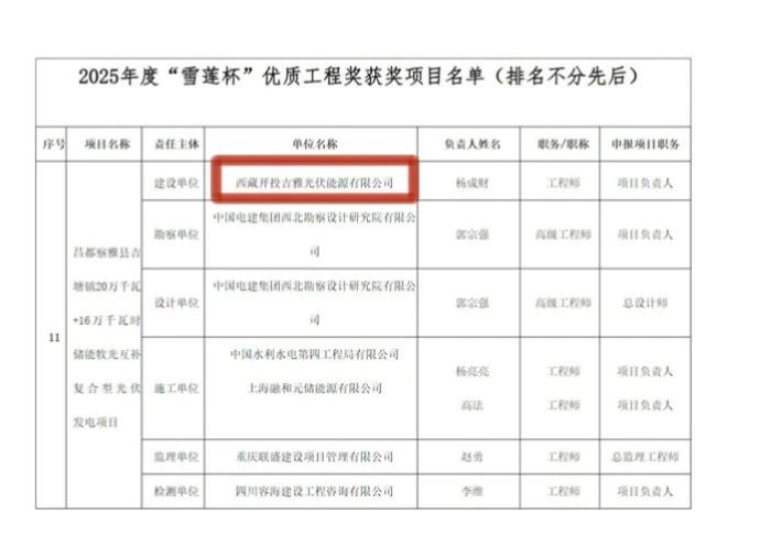 8月7日,西藏自治區住房和城鄉建設廳公布2025年度“雪蓮杯”優質工程獲獎項目名單,由西藏開投吉雅光伏公司投資建設的昌都察雅縣吉塘鎮20萬千瓦+16萬千瓦時儲能牧光互補復合型光伏發電項目榮獲該獎項。