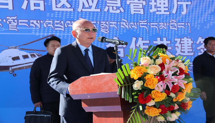 洪力代表區(qū)應(yīng)急管理廳對(duì)西藏民航投為自治區(qū)航空應(yīng)急救援所作出的突出貢獻(xiàn)表示感謝。他指出,此次簽約授牌儀式,是深入學(xué)習(xí)貫徹習(xí)近平總書(shū)記關(guān)于應(yīng)急救援體系建設(shè)重要指示精神,全面落實(shí)自治區(qū)黨委、政府加強(qiáng)航空應(yīng)急救援力量建設(shè)的重要舉措,希望雙方凝聚共識(shí)、形成合力,著眼我區(qū)自然災(zāi)害和事故災(zāi)難特點(diǎn),本著“資源共享、共建共用、協(xié)同應(yīng)對(duì)、一體聯(lián)動(dòng)”的原則,以救援任務(wù)需要為導(dǎo)向,以救援能力提高為核心,立足現(xiàn)有資源,著眼長(zhǎng)遠(yuǎn)發(fā)展,突出優(yōu)勢(shì)互補(bǔ),強(qiáng)調(diào)實(shí)訓(xùn)實(shí)戰(zhàn)。