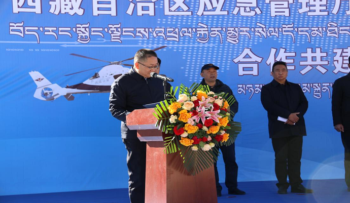 祁騰武代表西藏民航投,對(duì)各位領(lǐng)導(dǎo)、嘉賓的到來(lái)表示衷心感謝和誠(chéng)摯歡迎。他表示,西藏航空應(yīng)急救援基地的建設(shè)和揭牌,是貫徹落實(shí)習(xí)近平總書(shū)記關(guān)于西藏工作和應(yīng)急救援體系建設(shè)重要指示批示精神,推動(dòng)自治區(qū)黨委第十一次、第十四次專題會(huì)議精神落實(shí)落地的重要舉措,為推動(dòng)我區(qū)不斷健全完善“統(tǒng)一指揮、上下聯(lián)動(dòng)、空地同、快速反應(yīng)”應(yīng)急救援機(jī)制和“立體式、全天候、全災(zāi)種、高水平”綜合應(yīng)急救援體系邁出了堅(jiān)實(shí)的一步。期待民航投與自治區(qū)應(yīng)急廳的戰(zhàn)略合作從“心”出發(fā),向新而行,不斷開(kāi)創(chuàng)新的局面,交出滿意合格答卷。