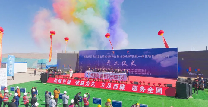 電站地處超高海拔4650m的西藏弱電網(wǎng)區(qū)域,具有穩(wěn)定電源支撐不足、高地震烈度、高風速、嚴寒缺氧、超強紫外線、年度及日間氣溫變化大等特點,使得電站在設(shè)計、建設(shè)、運營等方面面臨諸多世界級難題。“西藏開投集團聯(lián)合國內(nèi)一流企業(yè)及科研院校,創(chuàng)新性開展了‘弱電網(wǎng)下超高海拔塔式光熱電站關(guān)鍵技術(shù)研究與應(yīng)用’課題研究,并在西藏首次開發(fā)、推動‘長時儲能光熱+風電+光伏’一體化新能源電源實驗平臺的示范應(yīng)用,引領(lǐng)了光熱技術(shù)上下游產(chǎn)業(yè)鏈在高高原環(huán)境下的創(chuàng)新示范。”西藏開投集團總經(jīng)理助理、那曲河水電公司董事長楊作才介紹道。