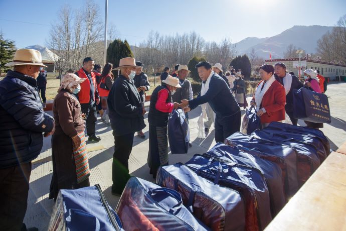 初冬的雪域高原寒意陣陣,敬老院內卻一派溫馨和睦,暖意融融,一聲聲“圖其切……圖其切”……不絕于耳,這是老人們接過毛毯等慰問品后發自內心的感謝。這些慰問品是活動組織者認真傾聽老人們的生活需求,精準對接敬老院后,為老人們溫暖過冬精心準備的一份沉甸甸的心意。