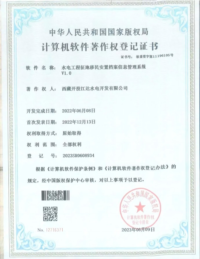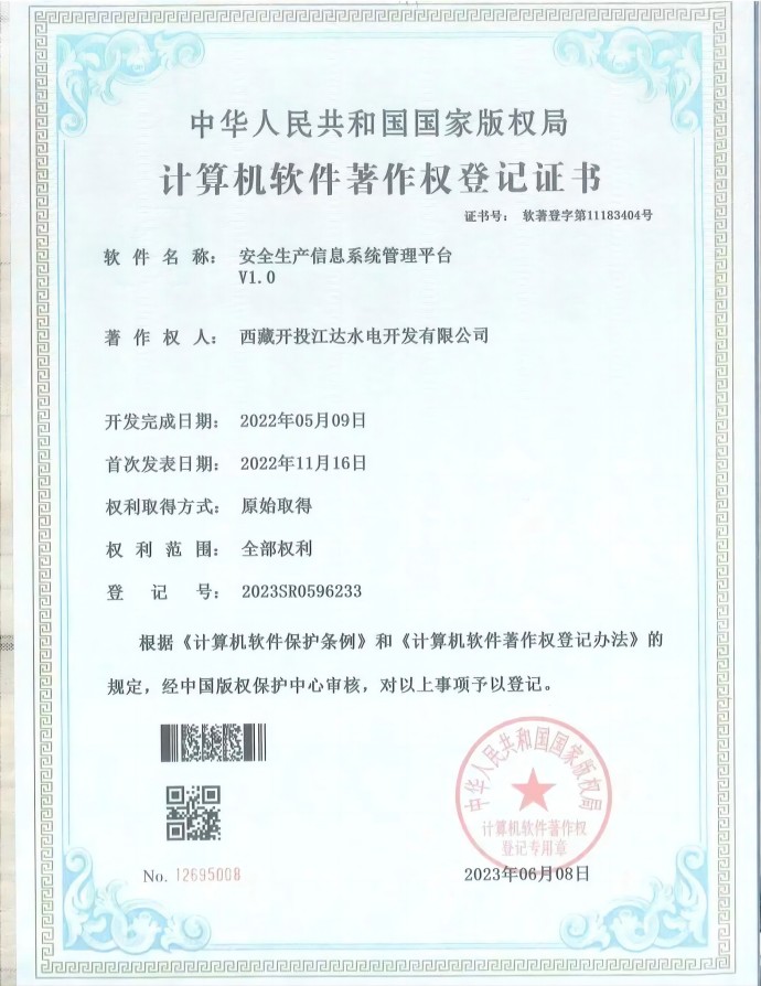 近日,經(jīng)中國版權保護中心審核,集團公司所屬項目公司申報的三項軟件著作權符合《計算機軟件保護條例》和《計算機軟件著作權登記辦法》的相關規(guī)定,被正式授予計算機軟件著作權登記證書。本次取得證書的3項軟件分別是“安全生產(chǎn)信息系統(tǒng)管理平臺V1.0”“電子檔案信息化管理系統(tǒng)V1.0”“水電工程征地移民安置檔案信息管理系統(tǒng)V1.0”。