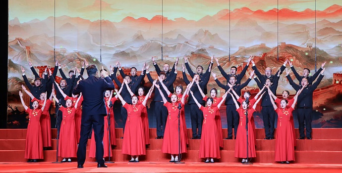 當晚的現場,集團公司合唱隊的演唱充滿了激情與力量,以激昂的節奏和磅礴的氣勢,深情謳歌了黨的豐功偉績,唱出了家國情懷,將對偉大祖國的深情祝福和前進道路上的奮斗精神融入歌聲之中,展現了國企職工不忘初心、闊步前行的昂揚姿態,贏得了臺下觀眾熱烈的掌聲與贊譽。