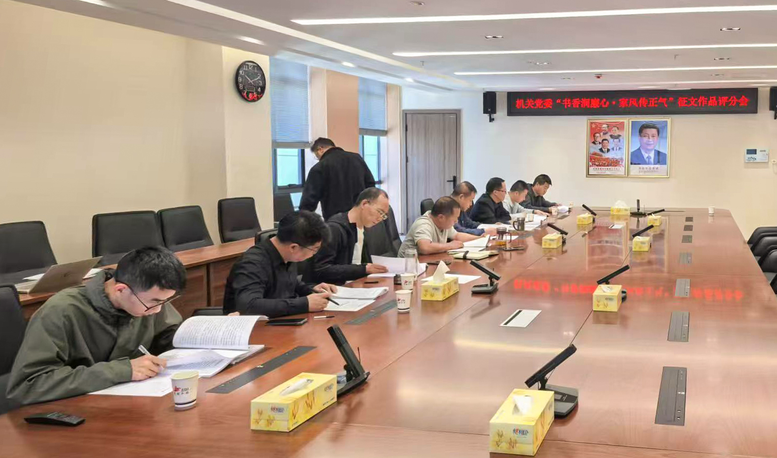 6月22日,由集團機關(guān)黨委舉辦的“書香潤廉心·家風(fēng)傳正氣”主題征文比賽評審會召開,8名評委對每篇參賽作品進行仔細評審。
