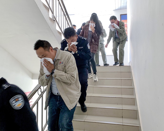 本次演練模擬場景為柴維鄉古強村發生4.3級地震,果多水電站有強烈震感,引發營地辦公樓二樓機房火災,產生大量濃煙。