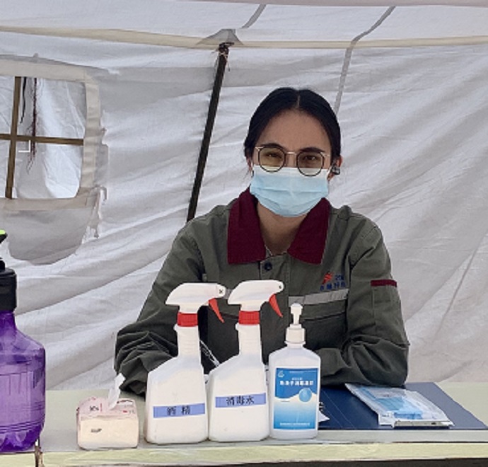 她是疫情防控的偵查員。及時(shí)排查人員健康狀況及行程,組織開(kāi)展核酸檢測(cè)5次,根據(jù)集團(tuán)公司及地方政府要求,及時(shí)報(bào)送相關(guān)信息及數(shù)據(jù)。