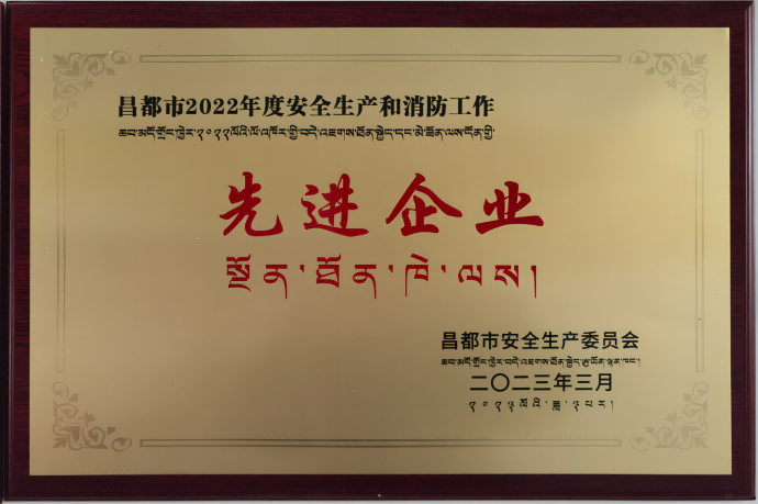 近日,昌都市安全生產委員會授予果多水電公司昌都市2022年度安全生產和消防工作先進企業榮譽稱號。