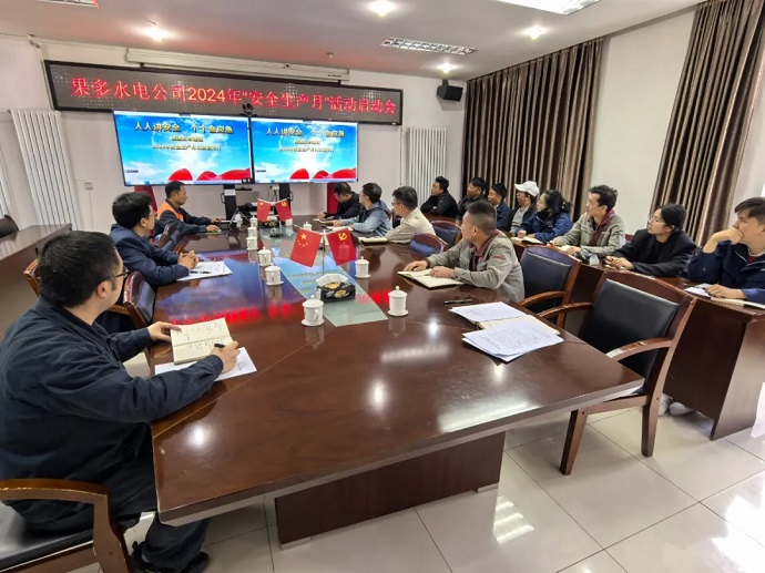 會議傳達學習了2024年習近平總書記關于安全生產重要論述精神和《國務院安委會辦公室應急管理部關于開展2024年全國“安全生產月”活動》的通知,宣貫了《西藏開投果多水電有限公司2024年“安全生產月”活動方案》,觀看了《人人講安全 個個會應急-暢通生命通道》公益宣傳片。