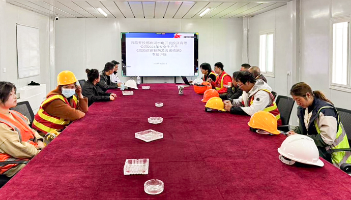 西藏開投安多縣土若125MW光伏+50MW光熱一體化項目施工現場處于青藏高原海拔4600米以上,含氧量較低,為讓項目各參建單位人員對高原病有一個正確的認識,掌握常見高原病防治、高原衛生與保健知識,消除對高原工作的緊張憂慮心理,養成良好的生活習慣,以最好的狀態投入工作,6月11日,那曲河水電公司組織監理及總承包單位在施工現場營地開展高原病知識講座。
