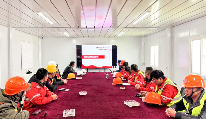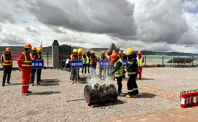 此次演習邀請了那曲市安多縣消防救援大隊防火參謀進行消防知識培訓及實際操作教學。培訓過程中,首先觀看了近年來多起施工現場火災典型案例,并對案例進行了深刻剖析,明晰了火災事故中相應人員所承擔的法律責任,同時講解了預防、滅火和自救逃生方法。接著,消防隊通過以練代訓的方式,讓參訓人員上手實操,全面了解干粉滅火器的使用方法。