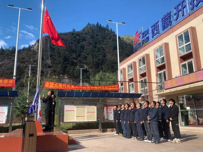 10月1日,果多水電公司全體干部職工在辦公樓前整齊列隊。隨著莊嚴肅穆的音樂聲響起,升旗儀式正式開始,鮮艷的五星紅旗冉冉升起,迎風飄揚,全體干部職工面向國旗行注目禮,共同表達對祖國的忠誠和熱愛。