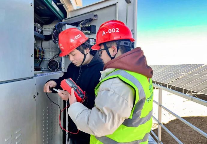 ▲噶爾光伏項目,現場施工人員檢查儲能設備。