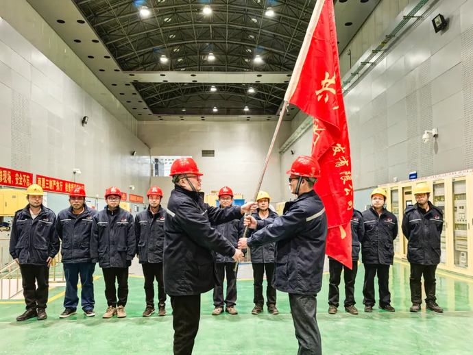 同時,為充分發揮黨員先鋒模范作用,推動黨建工作與生產經營深度融合,金橋水電公司黨支部成立機組檢修黨員突擊隊并舉行授旗儀式,旨在凝聚黨員力量,攻堅克難,推動2025年機組檢修工作高質量開展,助力公司安全生產再上新臺階,為2025年度檢修工作圓滿完成打下堅實基礎。