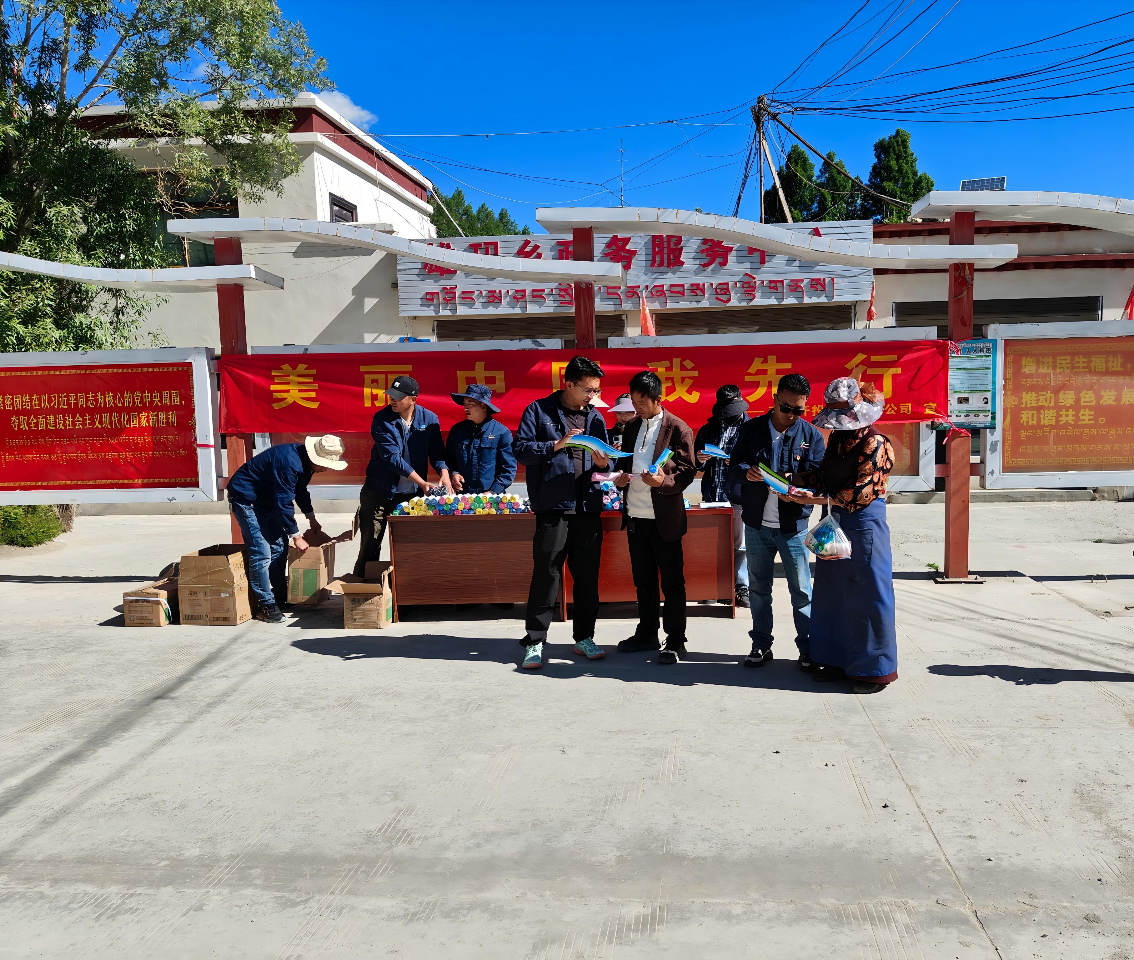 活動現場,公司宣傳人員向當地群眾發放《習近平生態文明思想及環境保護宣傳手冊》,并細心講解。宣傳內容涵蓋習近平生態文明思想及環境保護常識、水資源保護、水電可持續發展、自治區生態環保要求等。宣傳人員用通俗易懂的語言和表達形式,讓每一位群眾都能直觀了解到環保的重要性,活動現場氛圍熱烈。