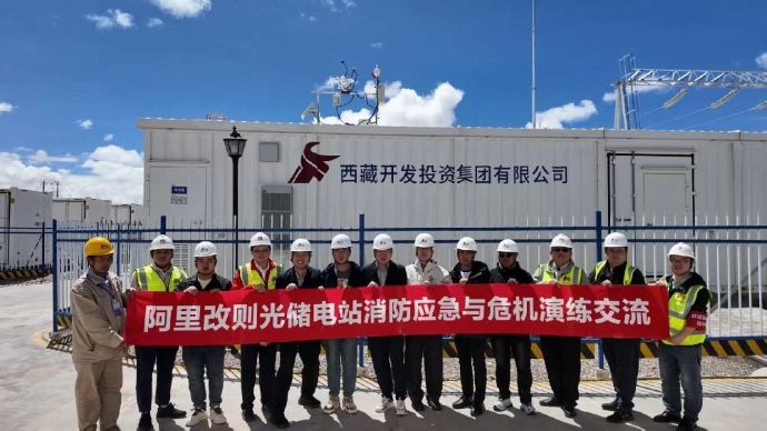近日,西藏開投阿里清潔能源公司在集團專家指導下,聯合改則縣應急管理局、華為數字能源公司,在改則光儲電站開展了電化學儲能電池倉事故應急演練。