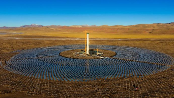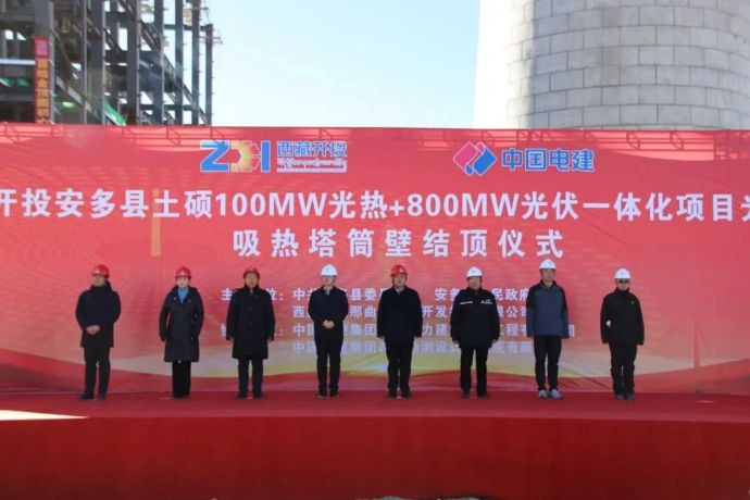 15日上午,西藏開投集團投資建設的全球海拔最高、西藏首個塔式光熱電站——西藏開投安多土碩100MW光熱+800MW光伏一體化項目吸熱塔順利結頂。吸熱塔從破土動工到主體完工僅用233天,創下同期同類型項目結頂最快紀錄。