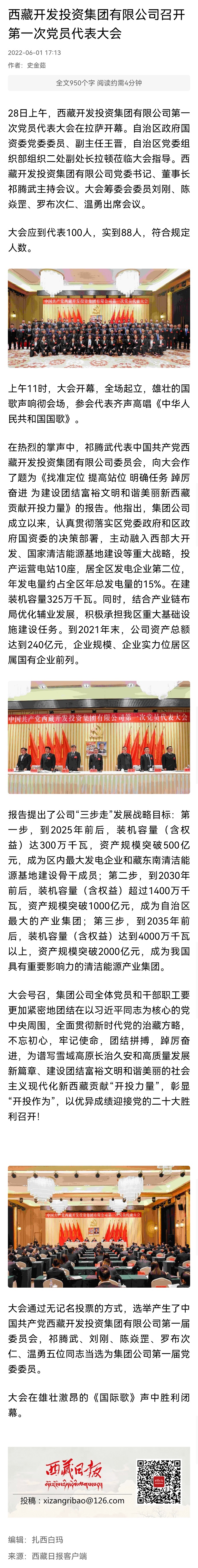 中國共產黨西藏開發(fā)投資集團有限公司 第一次黨員代表大會