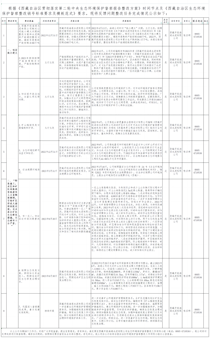西藏開投海通水泥有限公司關于第二輪中央生態(tài)環(huán)境保護督察反饋問題整改落實情況的公示