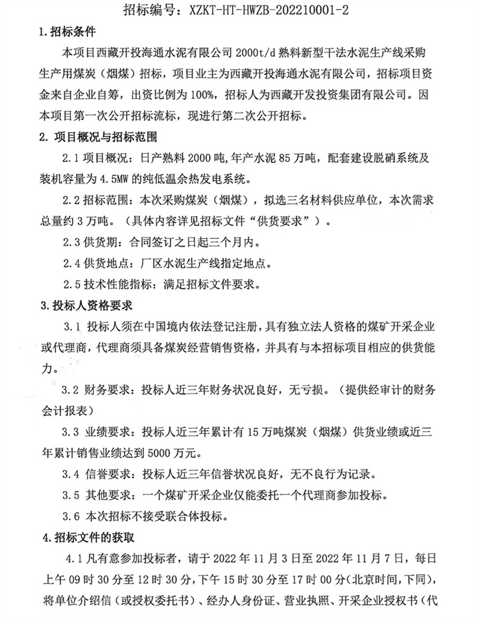 采購生產用煤炭(煙煤)二次招標公告