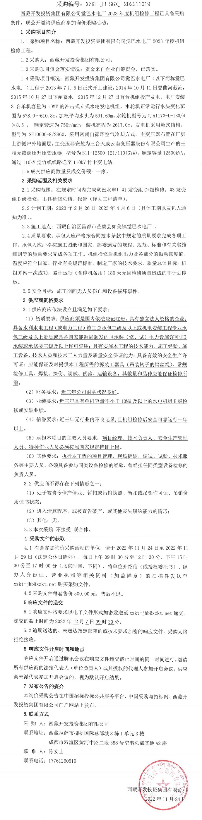 西藏開發投資集團有限公司覺巴水電廠2023年度