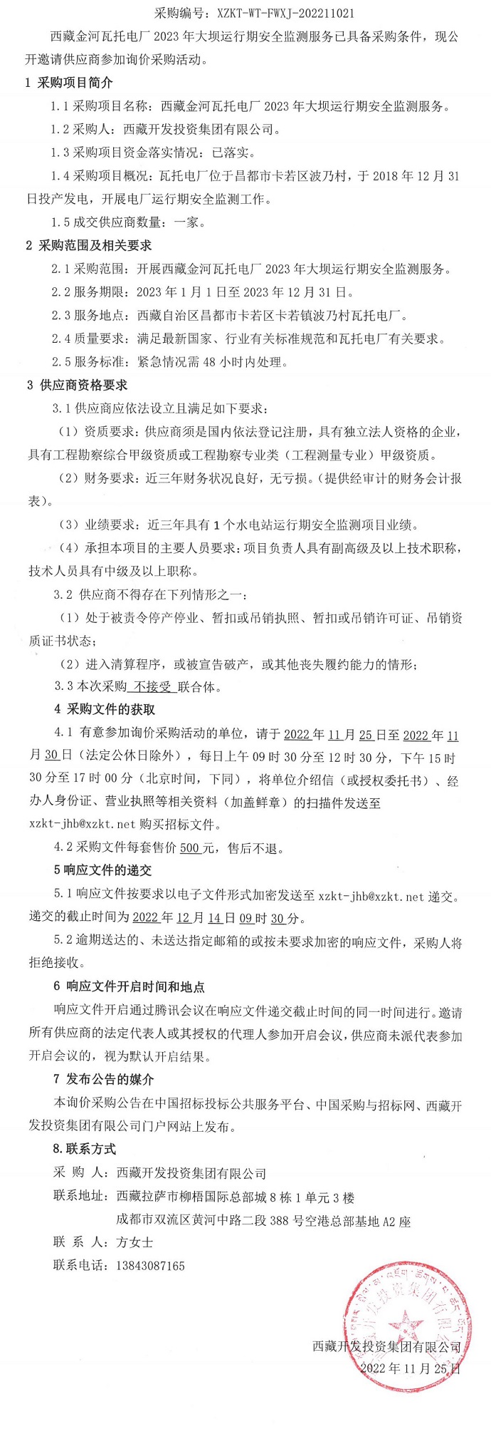 西藏金河瓦托電廠2023年大壩運行期安全監測服務