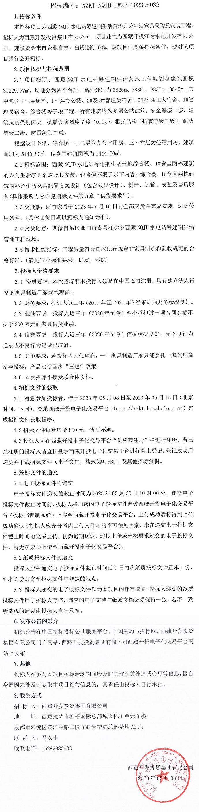 西藏NQJD水電站籌建期生活營地辦公生活家具采購及安裝工程招標公告