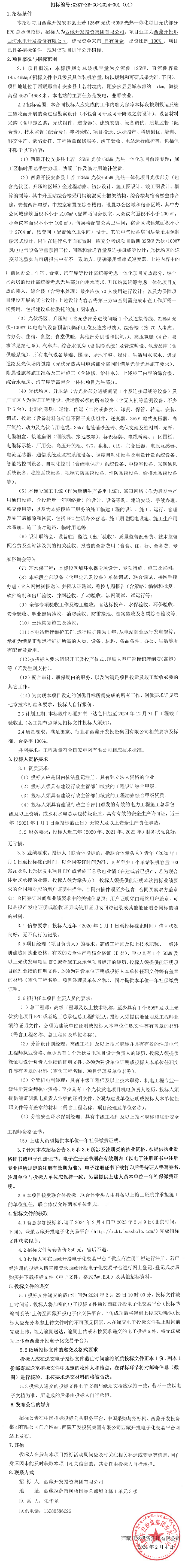 光伏部分EPC總承包二次招標公告