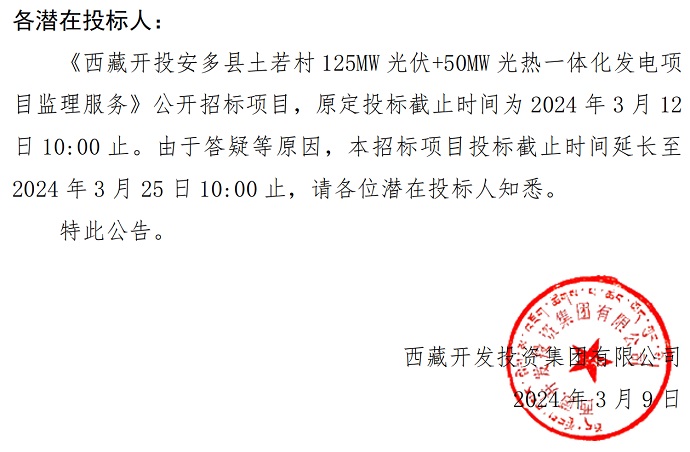 關于延長《西藏開投安多縣土若村 125MW光伏+50MW