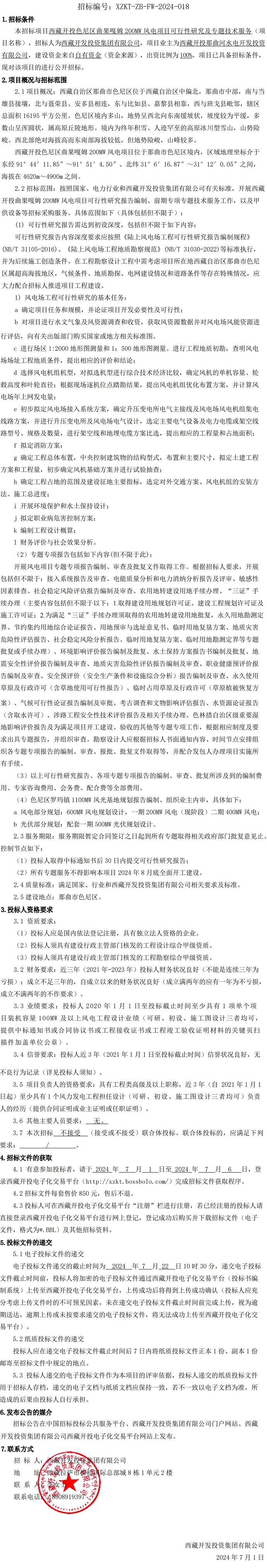 西藏開投色尼區曲果嘎姆200MW風電項目可行性研究及專題技術服務招標公告